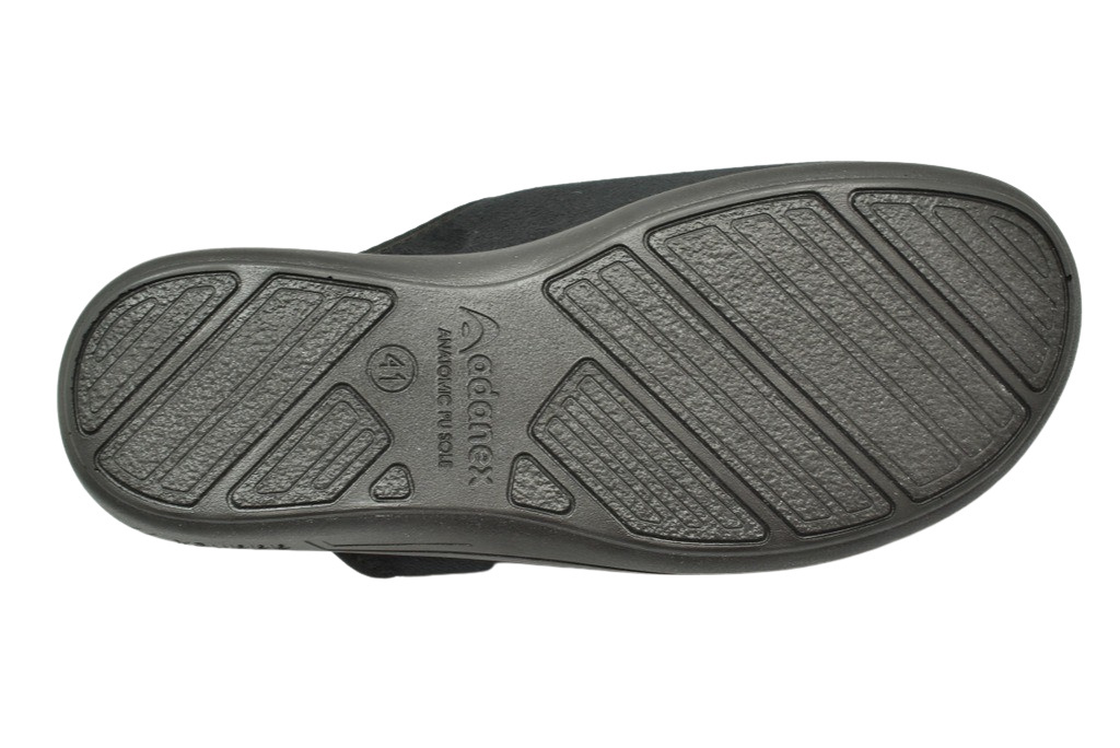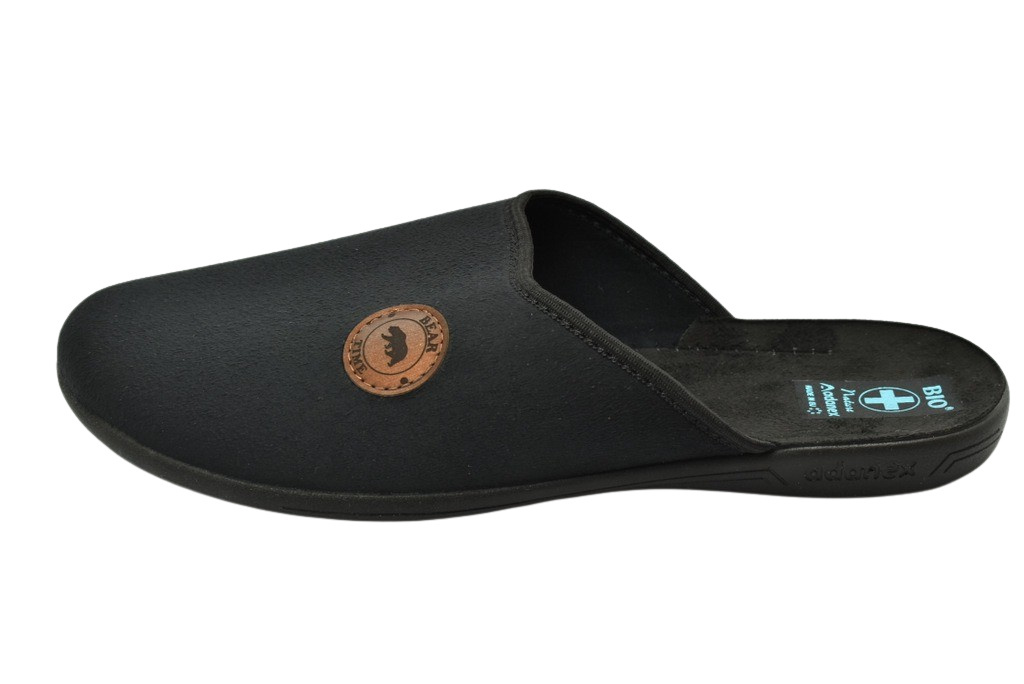 Klapki męskie firmy ADANEX, wysokie w palcach. Wykonane są z naturalnych tkanin, płótno. Spody typu BIO lekko profilowane, lekkie i elastyczne.