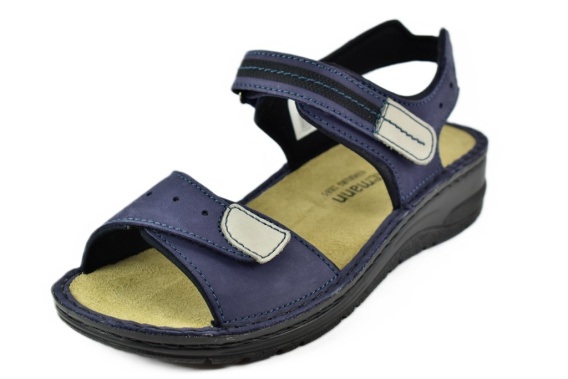 Sandały damskie firmy BERKEMANN. Wykonane ze skóry naturalnej, regulowane na dwa rzepy. Wkładka profilowana i wyjmowana, z pelotą na płaskostopie poprzeczne i wzdłużne. Lekkie i dające możliwość utrzymania prawidłowej postawy. Antypoślizgowa podeszwa.