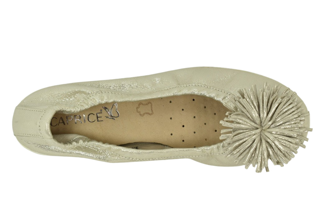 Baleriny marki Caprice, z zewnątrz i wewnątrz wykonane są ze skóry naturalnej. Antypoślizgowa podeszwa składa się z wysokogatunkowego tworzywa. Obuwie lekkie i elastyczne, posiada wszytą gumkę dla lepszego dopasowania do stopy.