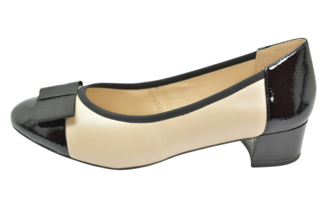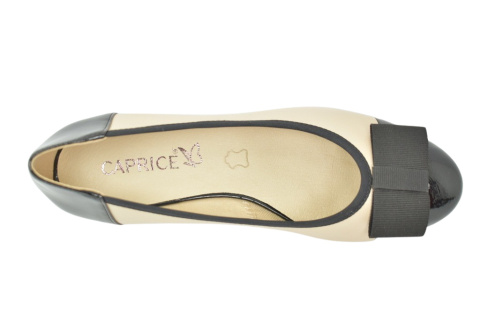 Czółenka marki Caprice. Z zewnątrz wykonane są ze skóry naturalnej, z elementami lakierowanymi. Wewnątrz obuwia znajduje się wkładka ze skóry naturalnej, ma właściwości "oddychające"-technologia 'ON AIR'*. Wysokość obcasa - 3,5 cm.