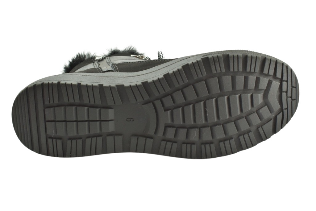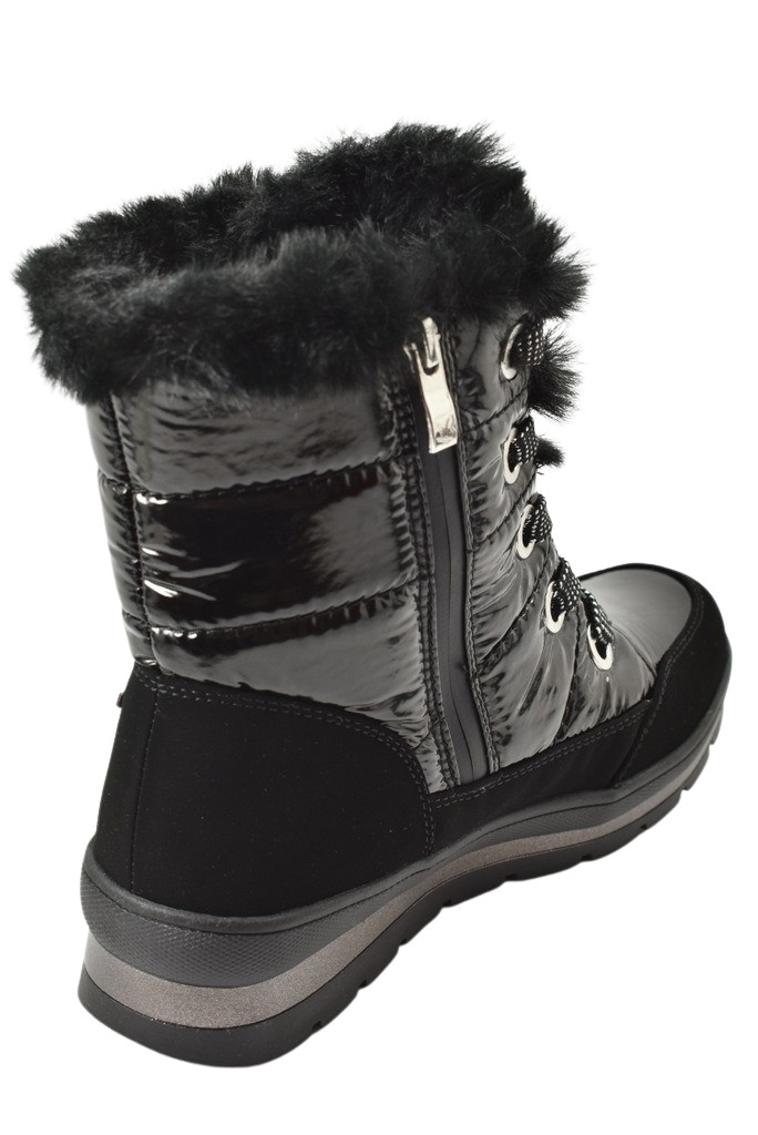 Ciepłe kozaki pośniegowe marki CAPRICE. Z zewnątrz wykonane są ze skóry naturalnej, zamszowej i materiału, wnętrze obuwia jest ocieplone naturalną wełną. Antypoślizgowa podeszwa to wysokogatunkowe tworzywo. Kozaki regulowane na sznurówkę z boku posiadają dodatkowo suwak. Wysokość koturna - 4 cm, cholewki 15 cm.