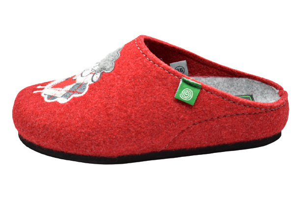 Dr Brinkmann, kapcie wsuwane damskie. Z zewnątrz i wewnątrz wykonane są z naturalnej wełny, wkładka jest profilowana, posiada amortyzację na piętę. Dla zadbania o kręgosłup koturn ma wysokość 3,5 cm. Polecane dla stóp problematycznych, np. z haluksami.