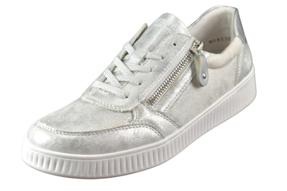 Tenisówki damskie firmy REMONTE. Wykonane ze skóry nabłyszczanej, miękka, wyjmowana wkładka została wykonana w technologii 'SOFT'. Regulowane na sznurówkę, która pozwala na dopasowanie wyższego podbicia czy opuchlizny jak i na suwak, który ułatwia wkładanie obuwia. Wysokość koturny - 3 cm.