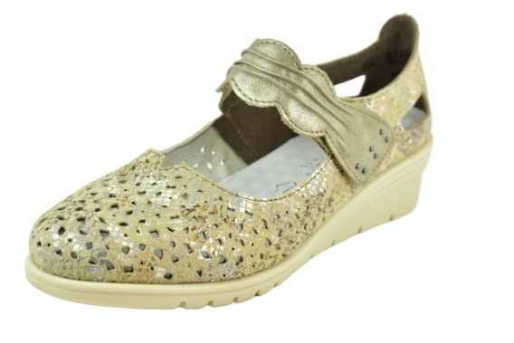 Półbuty dziurkowane firmy Rieker. Materiał zewnętrzny jest skóropodobny, a wewnątrz miękka wkładka z materiału. Podeszwa to wysokogatunkowe tworzywo. Obuwie regulowane na rzepę dla wygodniejszego wkładania obuwia. Miękki lekki kauczkowy spód.