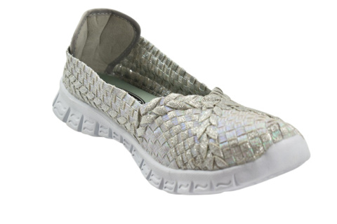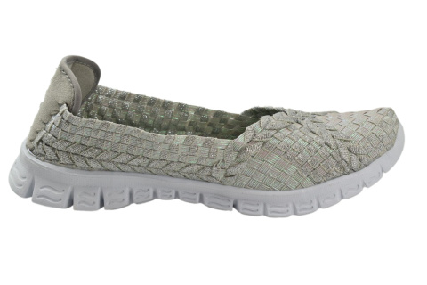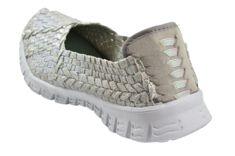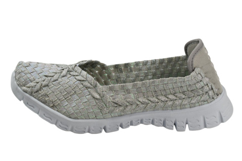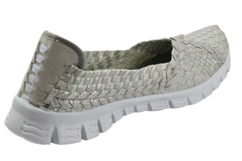 Cholewka tych półbutów jest wykonana z plecionych elastycznych gumek. To wyjątkowo elastyczny materiał, który doskonale dopasowuje się do indywidualnego kształtu stopy, niezależnie od jej tęgości. Dodatkowo, materiał ten jest miękki i przyjemny w dotyku, co sprawia, że noszenie tych butów jest niezwykle komfortowe.