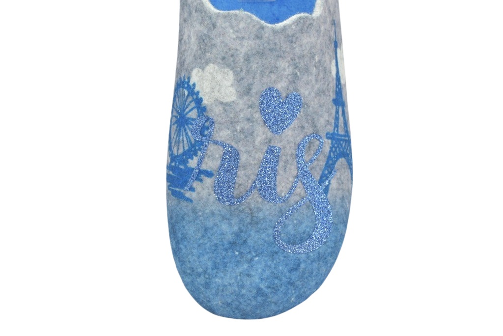 Kapcie wsuwane hiszpańskiej marki Sanita Flexx. Z zewnątrz i wewnątrz wykonane z ciepłego materiału. Podeszwa składa się z wysokogatunkowego tworzywa, jest antypoślizgowa.