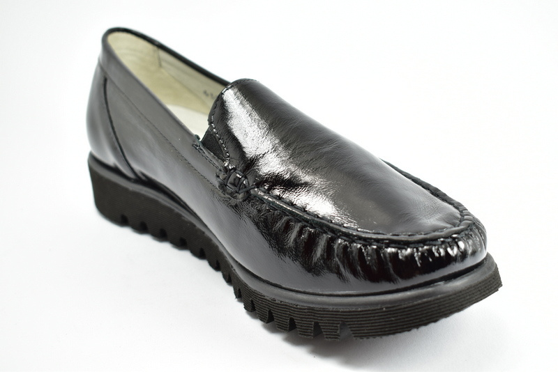 Wsuwki damskie firmy WALDLAUFER, o poszerzonej tęgości - K (na stopę szeroką). Wykonane ze skóry lico lakierowanej. Wyjmowana, profilowana wkładka skórzana. Antypoślizgowa i stabilna podeszwa.